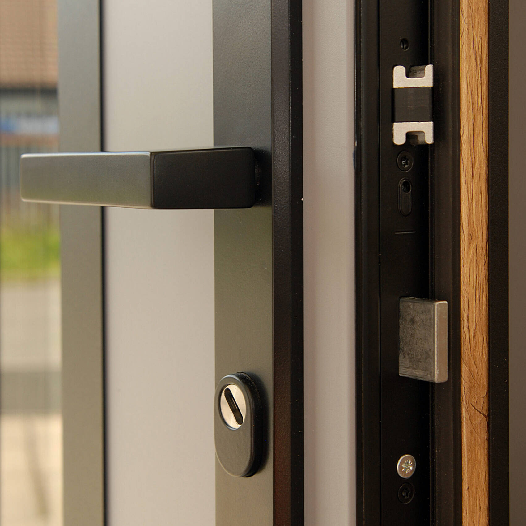 Vanguard front doors conform to RC2 and PAS24 security. Every door is fitted with a multi-point lock with two hooks, two horizontal bolts, one deadbolt and a latch. For additional security, four dogbolts are fitted in the outerframe and door sash, as standard. On taller doors, we can include an additional deadbolt locking point towards top of door.